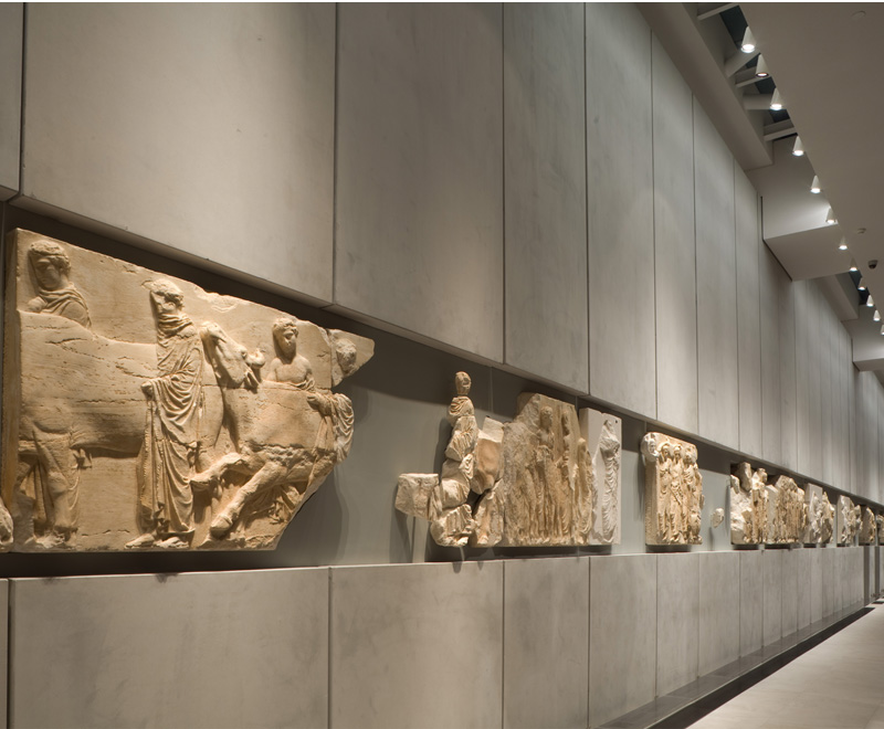 Στην αρχή της Διονυσίου Αρεοπαγίτου βρίσκεται το Μουσείο της Ακρόπολης, ένα από τα σπουδαιότερα μουσεία του κόσμου. Είναι ένα βραβευμένο κτίριο ευρωπαϊκών προδιαγραφών των Bernard Tschumi και Μιχάλη Φωτιάδη, το οποίο άνοιξε το 2009 και στεγάζει σπουδαία αρχαιολογικά ευρήματα από τον αρχαιολογικό χώρο της Ακρόπολης. Αποκορύφωμα της περιήγησης στο μουσείο αποτελεί η αίθουσα του Παρθενώνα στον τρίτο όροφο, μια γυάλινη αίθουσα γύρω από έναν ορθογώνιο χτιστό πυρήνα με τον προσανατολισμό και τις διαστάσεις του Παρθενώνα. Εκεί θα δούμε τις μετώπες και τη ζωφόρο του Παρθενώνα με θέμα την πομπή που γινόταν προς την Ακρόπολη κατά τα Μεγάλα Παναθήναια, στην οποία μπορούμε να περιηγηθούμε και ψηφιακά εδώ. Στο Μουσείο Ακρόπολης σώζονται σήμερα 50 μέτρα από τη ζωφόρο, ενώ 80 μέτρα βρίσκονται στο Βρετανικό Μουσείο, όπως και ένας λίθος στο Μουσείο του Λούβρου και θραύσματα σε άλλα ευρωπαϊκά μουσεία.