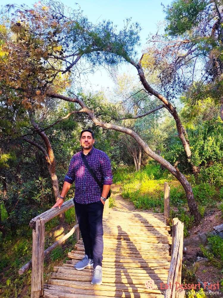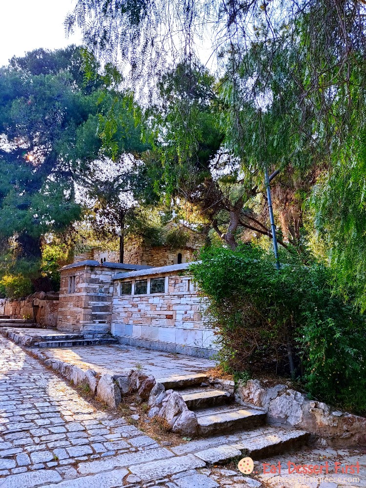 Η διαδρομή για τους λόφους ξεκινάει με έναν μεγάλο λιθόστρωτο δρόμο ανάμεσα σε πυκνή βλάστηση με ψηλά δέντρα. Από εκεί και πέρα φεύγουμε από την πολύβουη πόλη και μπαίνουμε μέσα σε ένα ήρεμο, φυσικό τοπίο. Ο δρόμος είναι σχεδιασμένος και αυτός από τον Δημήτρη Πικιώνη, τον πρωτοπόρο αρχιτέκτονα που λάτρευε το φυσικό τοπίο και τη λαϊκή αρχιτεκτονική και άφησε το στίγμα του στην Αθήνα. Στα ίχνη του θα συνεχίσουμε να κινούμαστε κι εμείς τώρα…