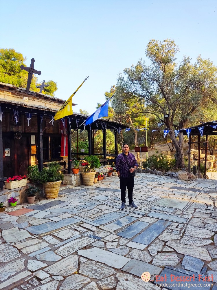Λίγο πιο πέρα βρίσκεται μια μικρή εκκλησία αφιερωμένη στην Αγία Σοφία, στην οποία την ημέρα εκείνη γινόταν μια βάφτιση -πόσο όμορφο μέρος για ένα μυστήριο. Ο ναός ανήκει στο Μερόπειο Ίδρυμα Φροντίδας Ηλικιωμένων και λειτουργεί εδώ και πάνω από εκατό χρόνια. Όπως διαβάσαμε θεμελιώθηκε το 1919 πάνω σε ερείπια αρχαιοελληνικού ναού της Παλλάδος Αθηνάς. Στο σημείο αυτό είχε επίσης την οικία του ο περίφημος Νεοπλατωνικός φιλόσοφος Πρόκλος, διευθυντής της Πλατωνικής Σχολής των Αθηνών.