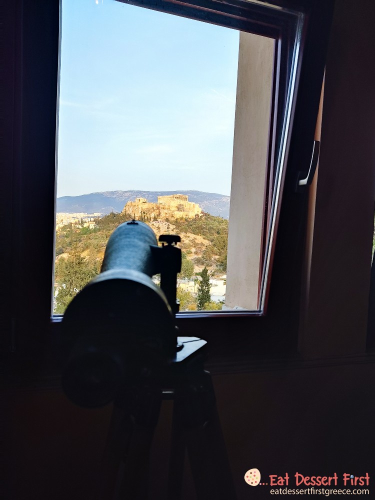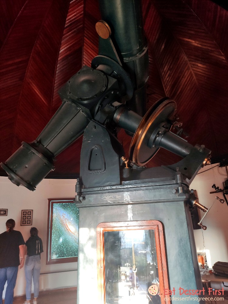 Επόμενος στη σειρά και τελευταίος προορισμός μας ο λόφος των Νυμφών με το Αστεροσκοπείο. Ο λόφος διαβάσαμε πως οφείλει το όνομά του στο ομώνυμο ιερό που ιδρύθηκε στην κορυφή του τον 6ο αιώνα π.Χ. Περπατώντας, συναντήσαμε πρώτα τον θόλο του Αστεροσκοπείου, μέσα στον οποίο υπάρχει το θρυλικό τηλεσκόπιο Δωρίδη. Το τηλεσκόπιο αυτό υπήρξε, όπως μάθαμε, το μεγαλύτερο στην Ελλάδα έως το 1959. Κατασκευάστηκε από τον οίκο Gautier το 1902 με χρηματοδότηση του Γάλλου υπήκοου Δημητρίου Δωρίδη.