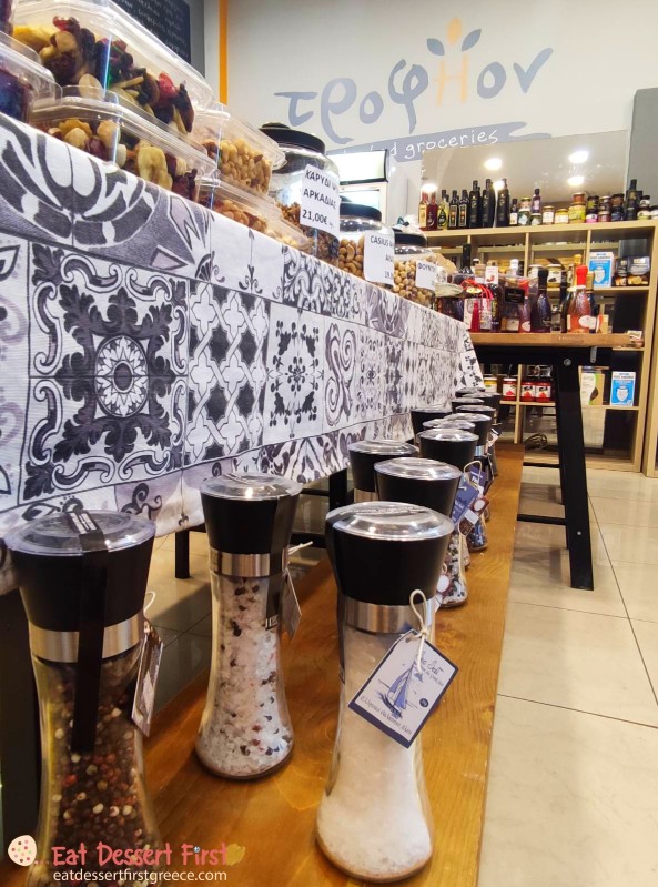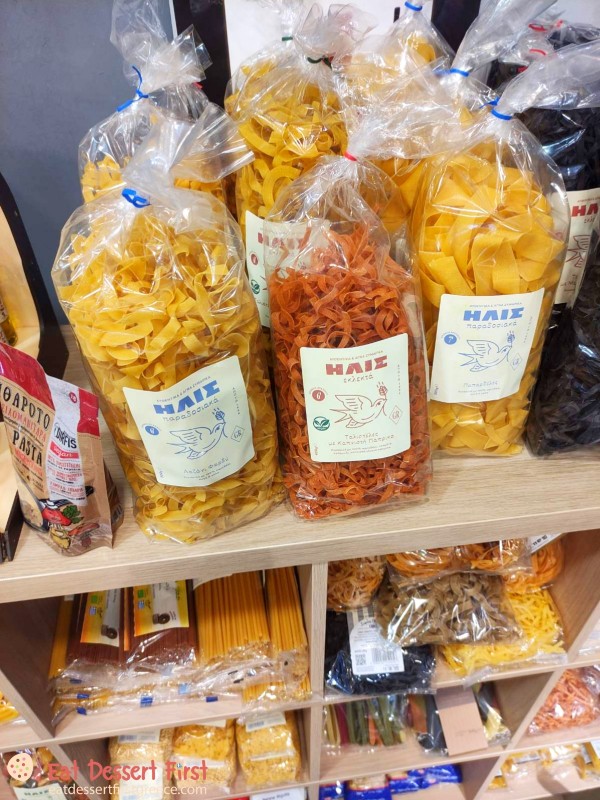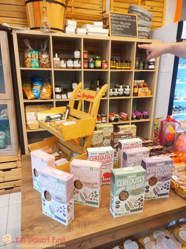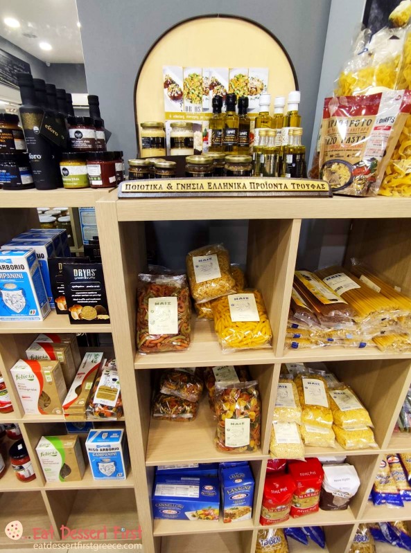 Είδαμε, λοιπόν, ένα σωρό νοστιμιές: τοπικά τυριά, αλλαντικά όπως γαλοπούλες, παστουρμάδες, παστράμια, λουκάνικα, φρέσκα αυγά, μαρμελάδες, γλυκά του κουταλιού, μέλια από μικρούς παραγωγούς, φυστικοβούτυρο, ταχίνι, ζυμαρικά όλων των ειδών -ακόμα και ζυμαρικά από όσπρια, ρύζι, όσπρια, παξιμάδια, ξηρούς καρπούς, παστέλια, δημητριακά, ελαιόλαδο, μπαχαρικά, χυμούς, τσάι, έτοιμα γεύματα, κατεψυγμένες πίτες και πεϊνιρλί, κρασιά, μπίρες, αναψυκτικά. Βρήκαμε, ακόμα, τουρσιά, κομπόστες, πατέ, προϊόντα με ελληνική τρούφα, σιρόπι αγαύης, ασιατικά προϊόντα. Η λίστα δεν τελειώνει!