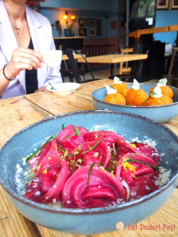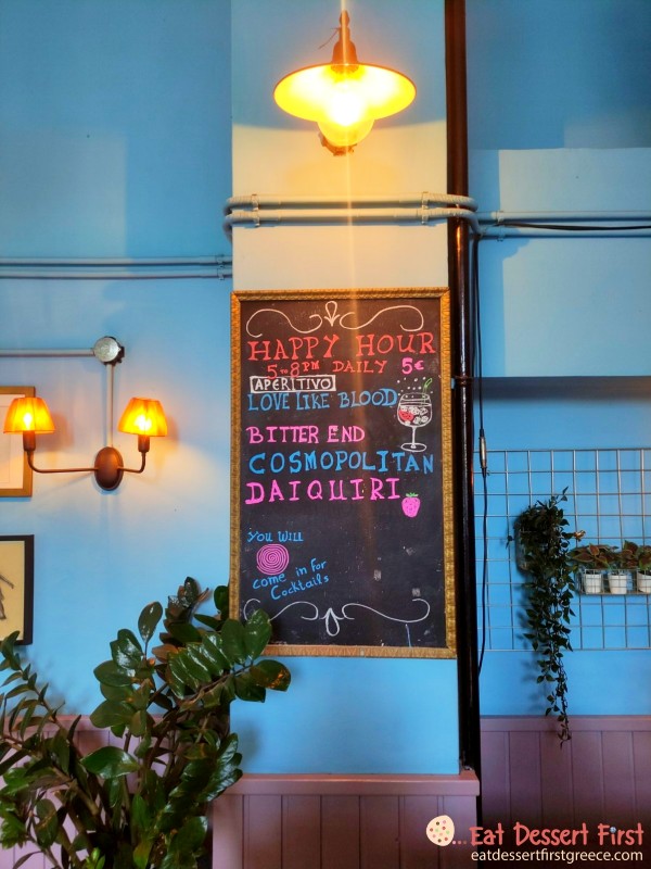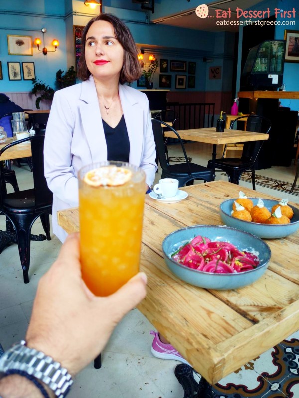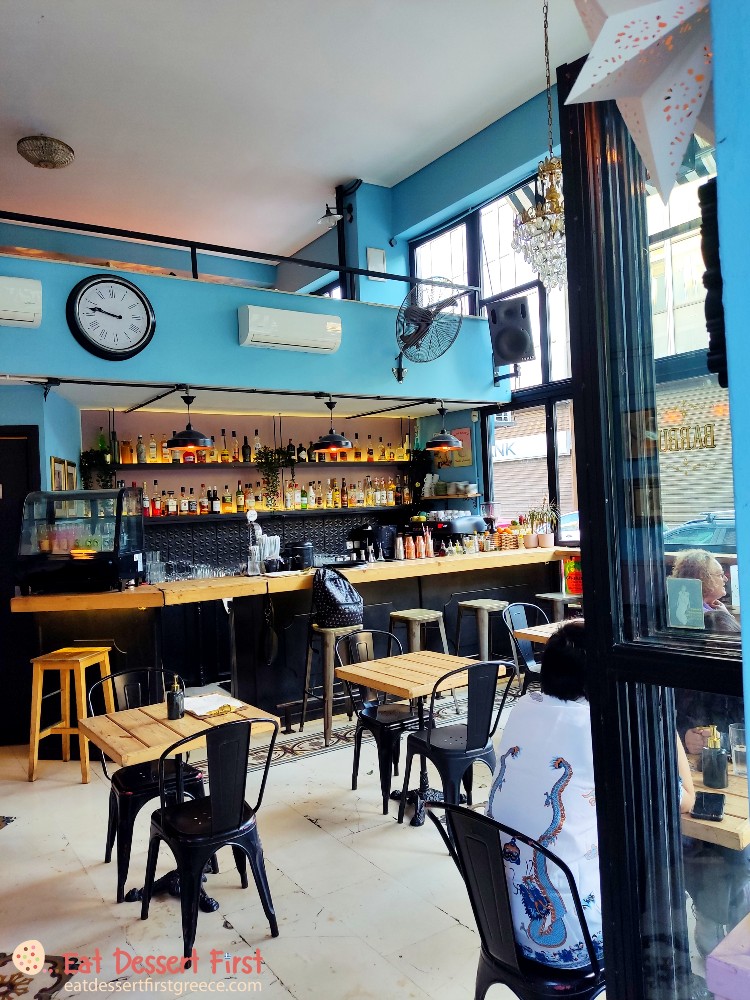 Φυσικά, θέλαμε να μάθουμε και για την κουζίνα που σερβίρουν. Η Ναταλία μας τόνισε πως τον τελευταίο χρόνο έχουν στραφεί προς μια ελληνική κατεύθυνση, προσπαθώντας να χρησιμοποιούν μόνο ελληνικά προϊόντα. Για παράδειγμα, στο πλατό τυριών τους έχουν τυριά από διάφορα μέρη της χώρας μας, γραβιέρα Νάξου, κοπανιστή Σύρου, κρητικό ανθότυρο. Σε πιάτα που προέρχονται από το εξωτερικό, όπως τα Dutch Pancakes, έχουν προσθέσει ελληνικές πινελιές, τσαλαφούτι και ελληνικό προσούτο. Στο Salad Bowl έχουν μόνο ελληνικά συστατικά. Τα κρασιά τους είναι αποκλειστικά ελληνικά και στον κατάλογό τους θα βρούμε μπίρες από μικρά ελληνικά ζυθοποιία. Ακόμα, εκτός από τα κλασικά, μπορούμε να δοκιμάσουμε και τα signature κοκτέιλ τους που έχει δημιουργήσει η barwoman τους, η Πάττυ, καθώς και δύο ζεστές επιλογές που ταιριάζουν πολύ τον χειμώνα.