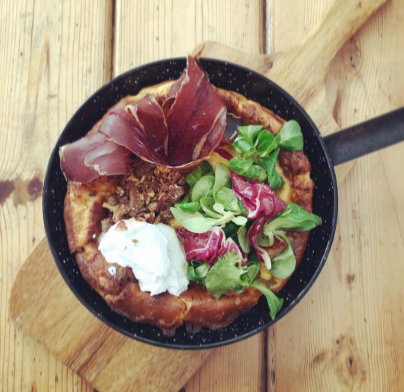 Εδώ και δύο μήνες έχουν εντάξει στον κατάλογό τους ένα vegan burger, το οποίο είναι ιδιαίτερο, με μπιφτέκι από μανιτάρια και κόκκινα φασόλια, χειροποίητη kimchi μαγιονέζα και καραμελωμένα κρεμμύδια. Η Ναταλία μας είπε πως το πιάτο αυτό το προτιμούν πελάτες είτε είναι vegan είτε όχι, μιας και είναι πολύ νόστιμο και δεν υπολείπεται σε τίποτα από πιάτα με ζωικά συστατικά. Μια επιλογή που δεν συναντάται συχνά στην Αθήνα, είναι το Dutch Baby Pancake, μια αμερικάνικη συνταγή. Πρόκειται για μια ζύμη, σαν μια μίξη σφολιάτας, κρέπας και τηγανίτας, που ψήνεται εκείνη τη στιγμή μέσα σε ένα ειδικό σκεύος στον φούρνο και μόλις βγει μπαίνουν από πάνω τα κρύα υλικά. Για τους γλυκατζίδες υπάρχει και η εκδοχή με κρέμα λεμονιού, μπισκότο αμυγδάλου και καραμελωμένα αχλάδι.