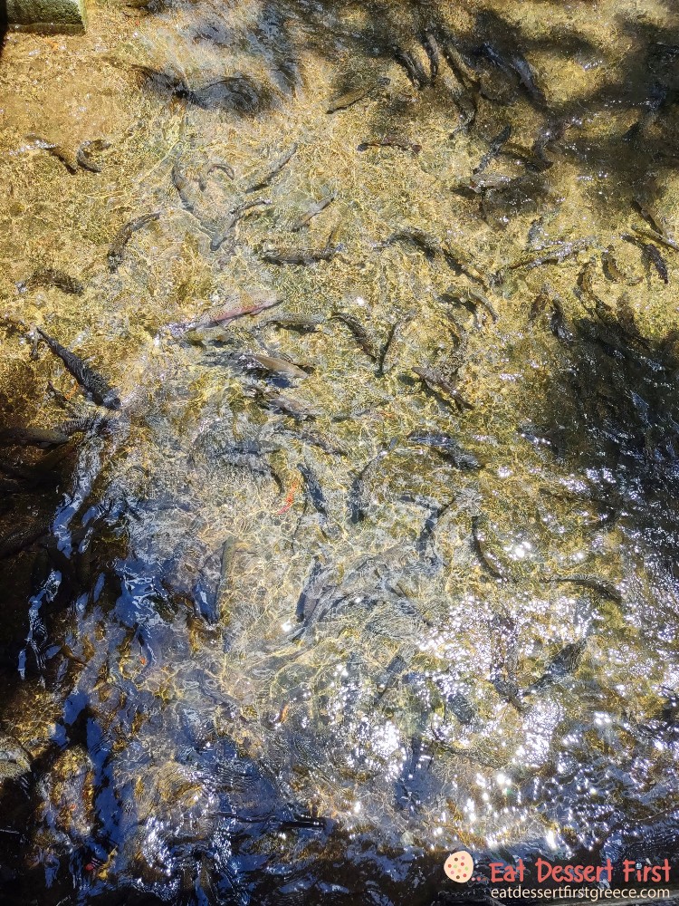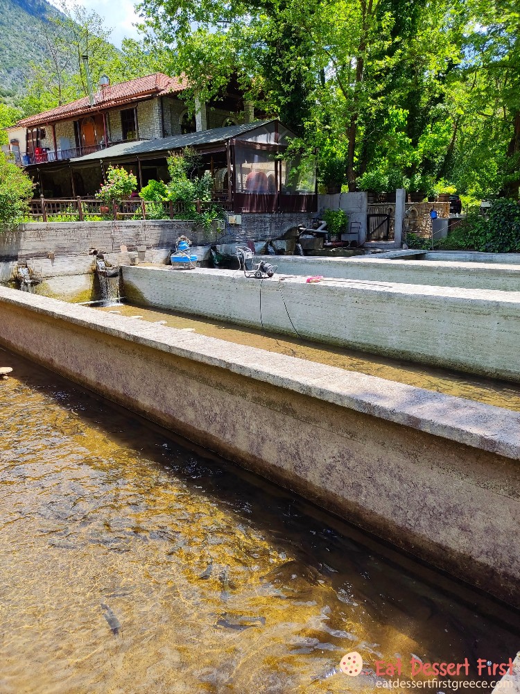 Το Πλανητέρο είναι επίσης φημισμένο για τις πέστροφές του. Δύο από τις ταβέρνες της περιοχής έχουν μάλιστα τα δικά τους εκτροφεία πέστροφας, τα οποία είναι επισκέψιμα. Μπήκαμε, λοιπόν, σε μια εγκατάσταση ιχθυοτροφείου πέστροφας και είδαμε πλήθος ψαριών, τα οποία οι επισκέπτες μπορούν να γευτούν φρεσκομαγειρεμένα στην ταβέρνα, ψητά, καπνιστά ή με βούτυρο και αμύγδαλα. Θα θέλαμε πολύ να δοκιμάσουμε την ντόπια πέστροφα, αλλά ήταν ακόμα νωρίς για φαγητό, οπότε καθίσαμε για καφεδάκι σε ένα όμορφο σημείο πάνω από τα ορμητικά νερά του Αροάνιου ποταμού.