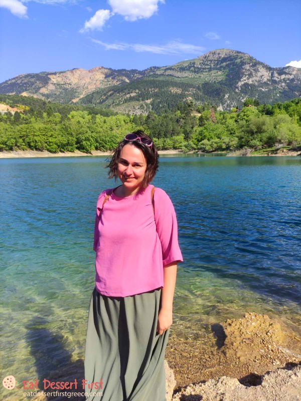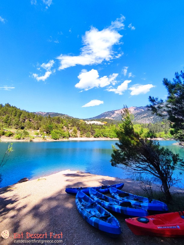 Μια φυσική, γαλαζοπράσινη λίμνη ανάμεσα στα βουνά με συγκλονιστική ομορφιά… Πόσο θα θέλαμε να ήταν ο καιρός λίγο πιο ζεστός και να κάναμε το κολύμπι μας! Αλλά και μόνο η βόλτα στην όχθη της είναι μια τρομερή εμπειρία. Ακριβώς από πάνω από τη λίμνη υπάρχει μια εξαιρετική παραδοσιακή ταβέρνα, ο Παράδεισος. Εκεί φάγαμε νόστιμο, σπιτικό φαγητό και συζητήσαμε με τον νεαρό ιδιοκτήτη Δημήτρη Σαρμά.