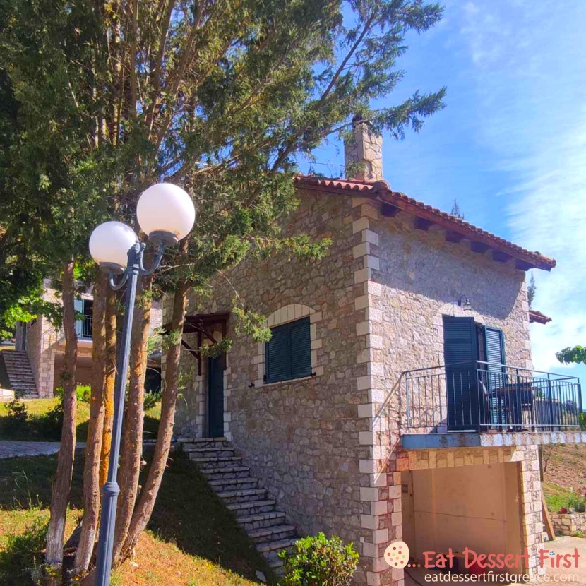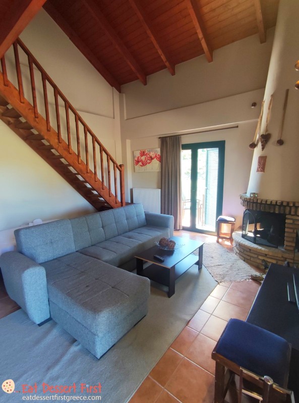 Μετά το πλούσιο, πεντανόστιμο πρωινό μας ο Βασίλης μας έδειξε μια από τις όμορφες μεζονέτες του. Ο χώρος της είναι πολύ ζεστός και φιλόξενος, με το τζάκι και το ξύλο στο πάτωμα και τη στέγη. Μια ωραία επιλογή για να νιώσεις σαν στο σπίτι σου!