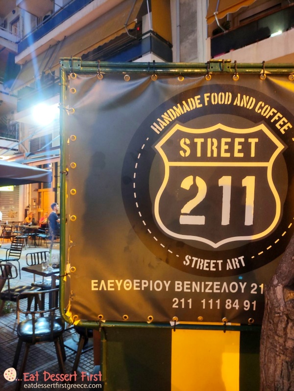 Το Street 211 είναι ένα μαγαζί παρεΐστικο, γεμάτο κόσμο, νεαρότερο και μεγαλύτερο σε ηλικία, φίλους, ζευγάρια, οικογένειες με παιδάκια. Στα εξωτερικά του τραπεζάκια αυτή την εποχή είναι πολύ ευχάριστα, μπορείς να απολαύσεις το ρόφημα ή τον καφέ σου, να συζητήσεις με την παρέα σου και να χαζεύεις τους περαστικούς που περνάνε. Ο εσωτερικός του χώρος είναι επίσης πολύ φροντισμένος, μεγάλος και άνετος, με τραπεζάκια με καναπέδες και ψηλούς πάγκους με σκαμπό, industrial μεταλλικά διακοσμητικά στοιχεία και πρωτότυπα γκράφιτι στους τοίχους.