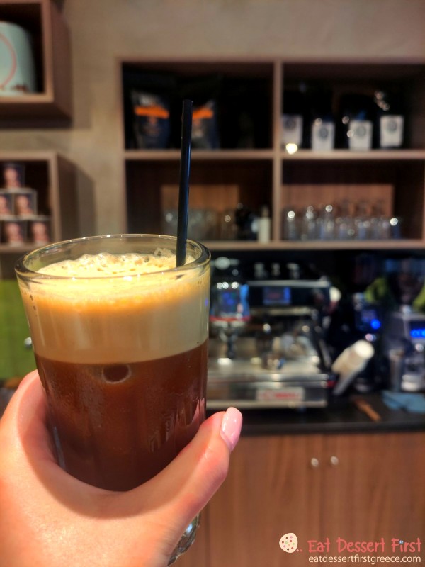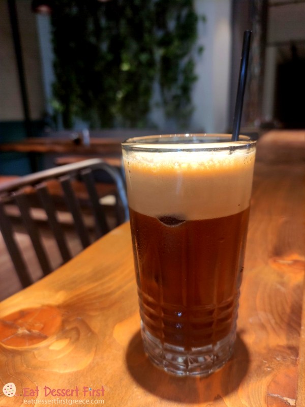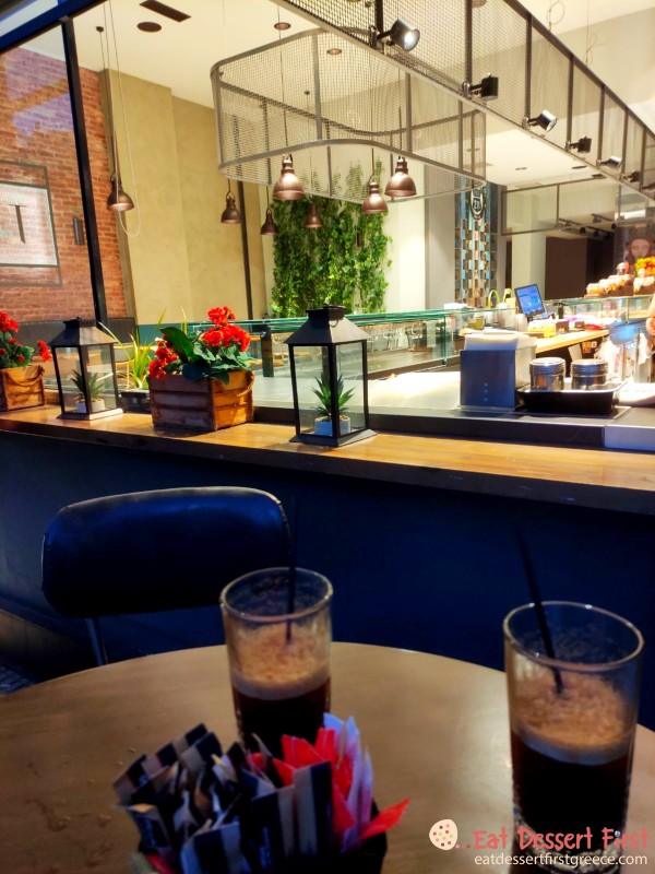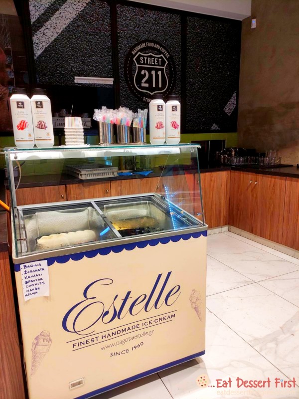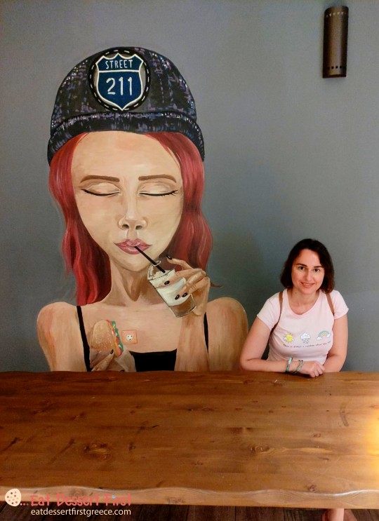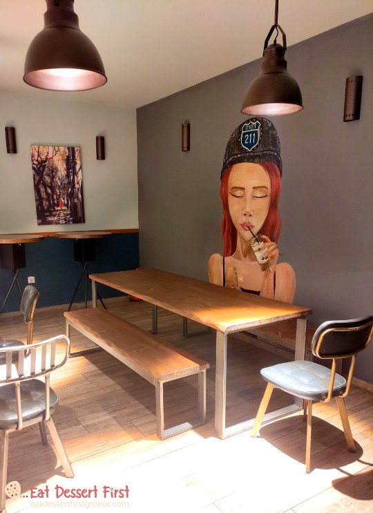 Στο Street 211 έρχεται κόσμος από το πρωί μέχρι το βράδυ. Από το πρωί σερβίρει καφέδες, ροφήματα και χειροποίητα σφολιατοειδή, κρουασάν, μπαγκέτες, αραβικές πίτες, ενώ αργά το απόγευμα και το βραδάκι μπορείς να πιεις μπίρα, κρασί, ποτό. Το καλοκαίρι φτιάχνουν και κοκτέιλ, τα κλασικά και αγαπημένα, αλλά και ένα signature Street 211 κοκτέιλ. Ειδικά αυτή την εποχή θέλουν να λειτουργούν και σαν μπαράκι, για αυτό και άνοιξαν την τζαμαρία ώστε να έχει επαφή το μπαρ με τον εξωτερικό χώρο. Εμείς θέλαμε να δοκιμάσουμε τον καφέ τους, οπότε παραγγείλαμε δύο παγωμένους εσπρέσσο φρέντο και διαλέξαμε ένα τραπεζάκι έξω, κοντά στο μπαρ.
