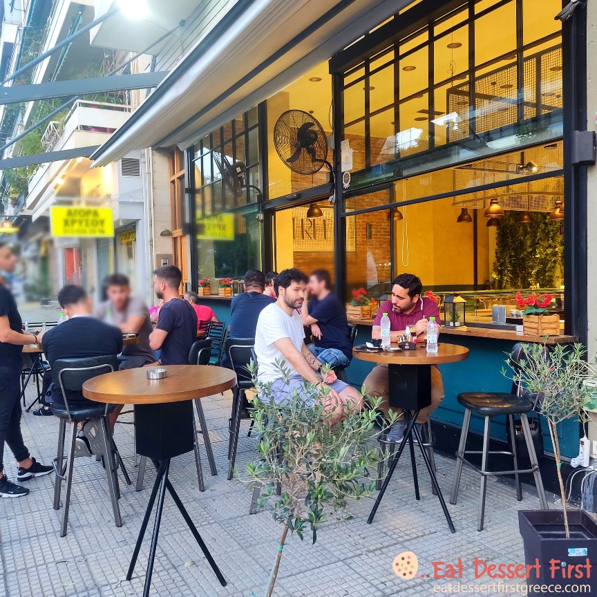 Στην παρέα μας ήρθε ο Παναγιώτης, ο ιδιοκτήτης και μας αφηγήθηκε την ιστορία του. Μας είπε πως είχαν άλλο ένα μαγαζί στον Πειραιά, αλλά λόγω φόρτου εργασίας επέλεξαν να επικεντρωθούν στην επιχείρηση της Καλλιθέας, η οποία στις αρχές Ιουνίου έκλεισε τέσσερα χρόνια λειτουργίας. Η περίοδος αυτών των χρόνων ήταν πολύ δύσκολη λόγω της πανδημίας… Στην πρώτη καραντίνα ήταν κλειστά, ενώ αργότερα λειτουργούσαν πολύ με delivery. Οι πελάτες επέλεγαν ακόμα και τον χειμώνα να καθίσουν στον εξωτερικό χώρο, ακόμα και αν ήταν εμβολιασμένοι. Παρά τις δυσκολίες ο κόσμος της περιοχής το αγάπησε από την αρχή, και συνεχίζει να το στηρίζει!