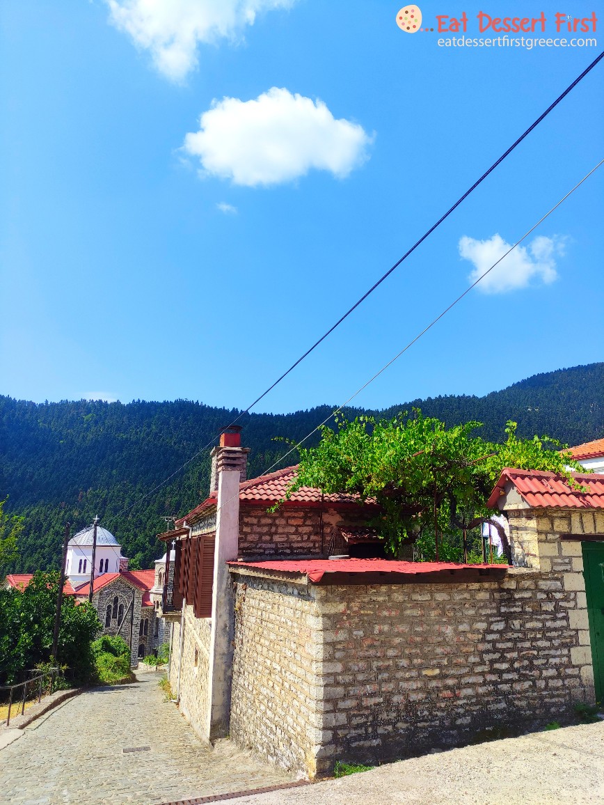 Μετά το Νέο Μικρό Χωριό ο Γιώργος περπάτησε ξανά στο δασικό μονοπάτι, πέρασε από τον Γαύρο και έφτασε στο Μεγάλο Χωριό. Στην είσοδο του χωριού, λίγο πριν ξεκινήσουν τα σπίτια του, σε υποδέχεται το όμορφο εκκλησάκι του Αγίου Αθανασίου. Απέναντι βρίσκεται η ταβέρνα Άγιος Αθανάσιος, στην οποία επιστρέψαμε το βράδυ για να δοκιμάσουμε την τοπική κουζίνα της.
