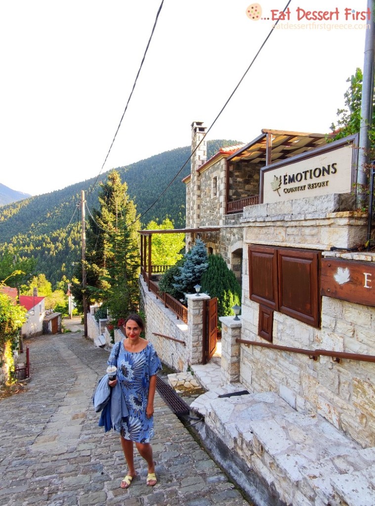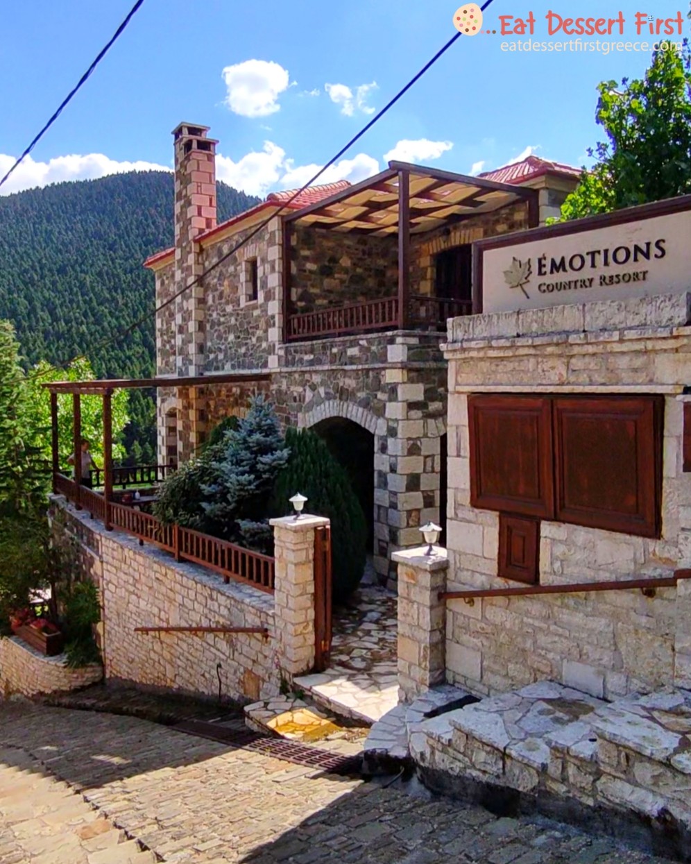 Λίγα μόλις βήματα πιο κάτω από την εκκλησία βρίσκεται το ξενοδοχείο που μας φιλοξένησε, το Emotions Country Resort. Μόλις αντικρίσαμε το ξενοδοχείο ξέραμε πως θα είχαμε μια φανταστική διαμονή. Πετρόχτιστο, με απέραντη θέα προς τα καταπράσινα βουνά, υπόσχεται με την πρώτη ματιά μια διαμονή γεμάτη χαλάρωση και ζεστασιά.