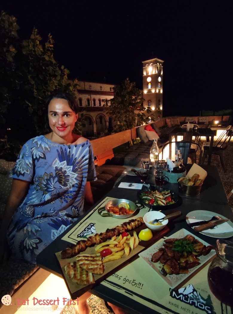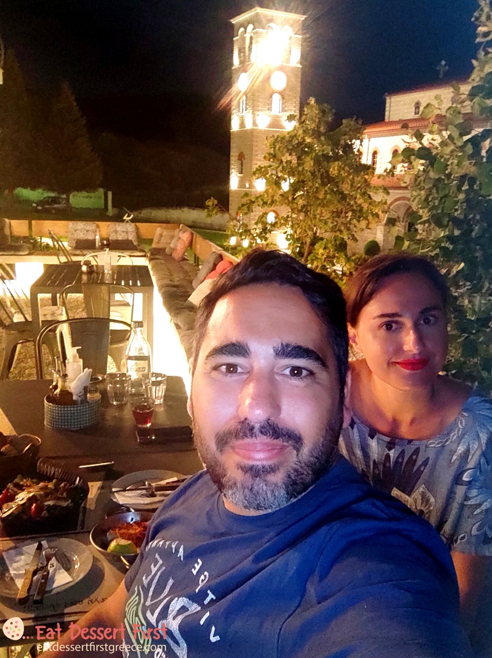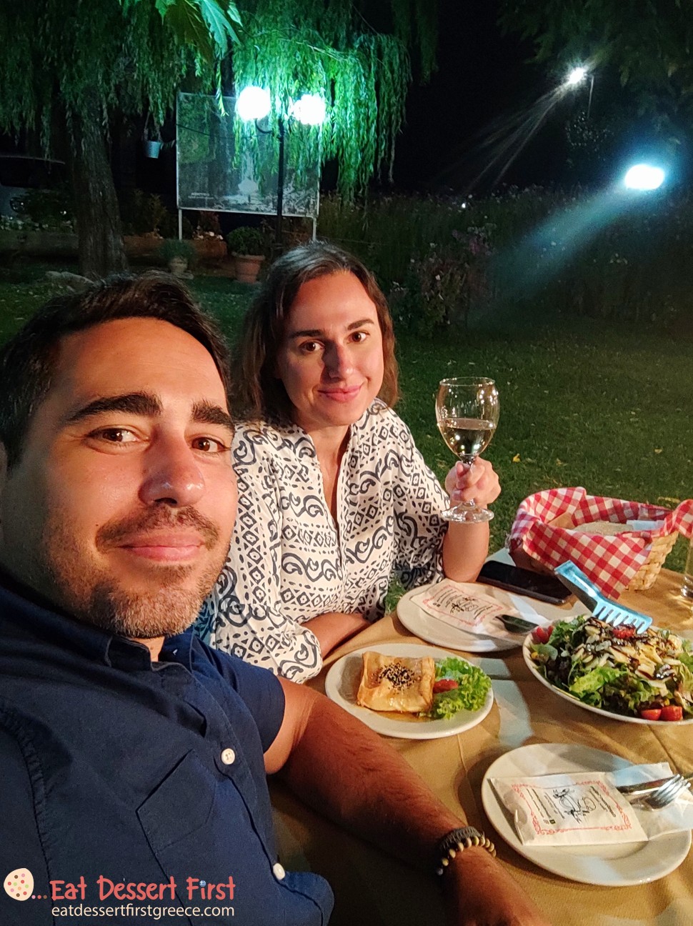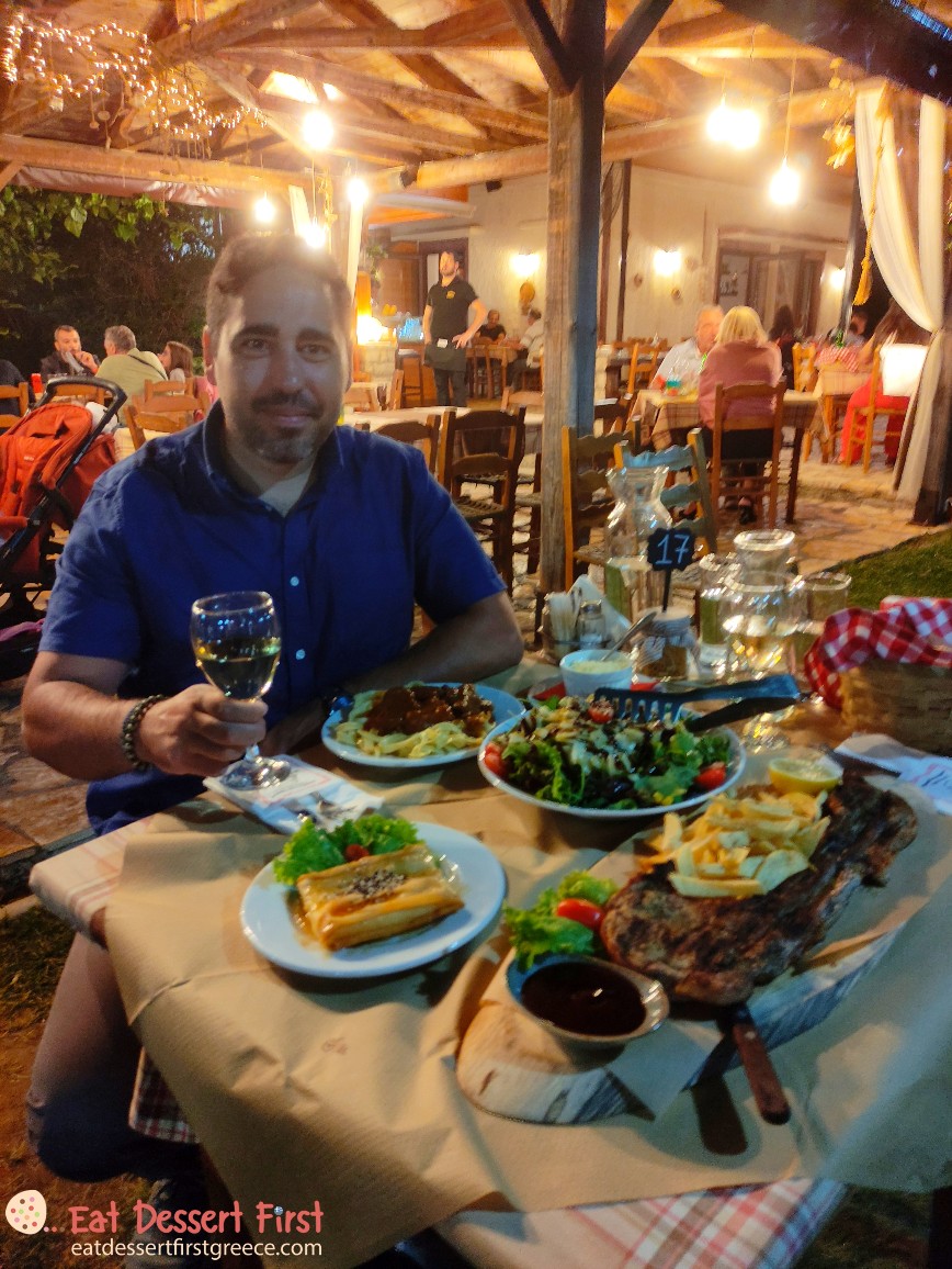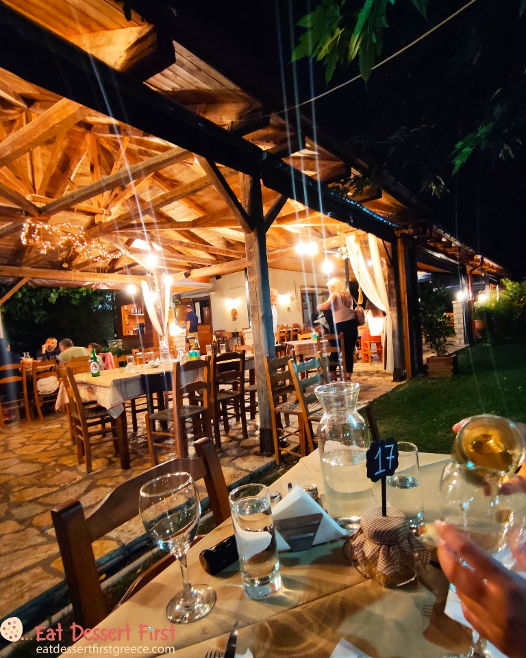 Ξεκουραστήκαμε, λοιπόν, για λίγες ώρες στο ξενοδοχείο μας και μόλις βράδιασε γυρίσαμε στο Μεγάλο Χωριό για να καθήσουμε στο εξοχικό κέντρο Άγιος Αθανάσιος, σε ένα από τα εξωτερικά του τραπεζάκια, μέσα στην πανέμορφη φύση. Ο Άγιος Αθανάσιος είναι γνωστός για τα μαμαδίστικα μαγειρευτά του, αλλά και τα ψητά του κρέατα, οπότε θέλαμε να τα δοκιμάσουμε και τα δύο!