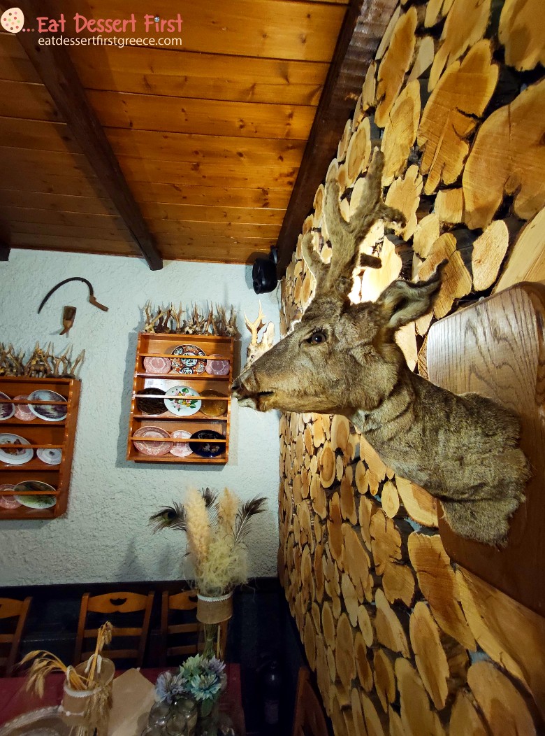Στην ταβέρνα μας υποδέχθηκε εγκάρδια η νεαρή ιδιοκτήτρια Άνθη Γιαννακοπούλου και μας έδειξε τους εσωτερικούς χώρους του μαγαζιού. Στη διακόσμηση κυριαρχεί το ξύλο και τα παραδοσιακά στοιχεία, τα οποία δημιουργούν μια αίσθηση ζεστασιάς, την οποία τον χειμώνα ενισχύει το μεγάλο τζάκι. Αλλά και έξω αυτή την εποχή είναι πραγματικά φανταστικά! Το μέρος είναι επίσης πολύ όμορφο για τη διοργάνωση του τραπεζιού ενός γάμου ή μιας βάφτισης, κάτι το οποίο συνηθίζουν να κάνουν.