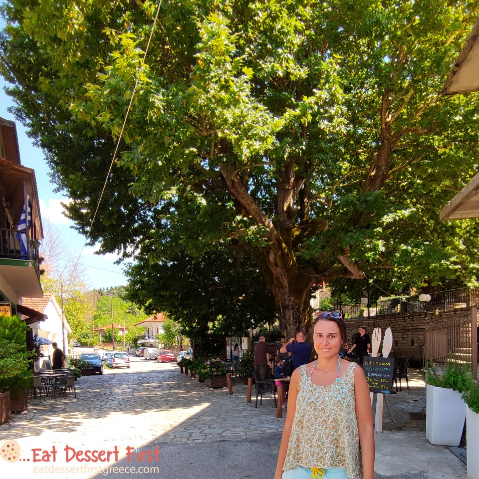 Εδώ ήταν το τέλος της πεζοπορίας για την Ελίζα, η οποία κάθισε να απολαύσει ένα καφεδάκι στη δροσερή πλατεία του Παλιού Μικρού Χωριού, σε υψόμετρο 860μ., κάτω από τον μεγάλο πλάτανο με ιστορία δύο αιώνων, με τον ήχο του νερού που κυλάει αστείρευτο από τις έξι βρύσες της πλατείας. Το νερό τους είναι τόσο κρύο που, όπως διαβάσαμε, παλιά χρησίμευαν ως «ψυγείο», μιας και κάτω από τη συνεχή κρυστάλλινη ροή τους έβαζαν αναψυκτικά και φρούτα για να τα κρυώνουν.
