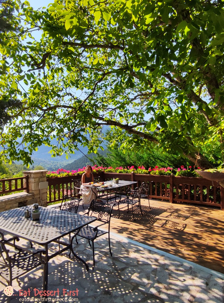 Αυτή τη φορά θέλαμε να απολαύσουμε το πρωινό μας στην κατάφυτη αυλή του Emotions Country Resort… Ένα μεταλλικό τραπεζάκι στη γωνία του κήπου, με φόντο πολύχρωμα λουλούδια και στο βάθος όπου και να κοιτάξεις πράσινα βουνά, ήταν η ιδανική θέση!
