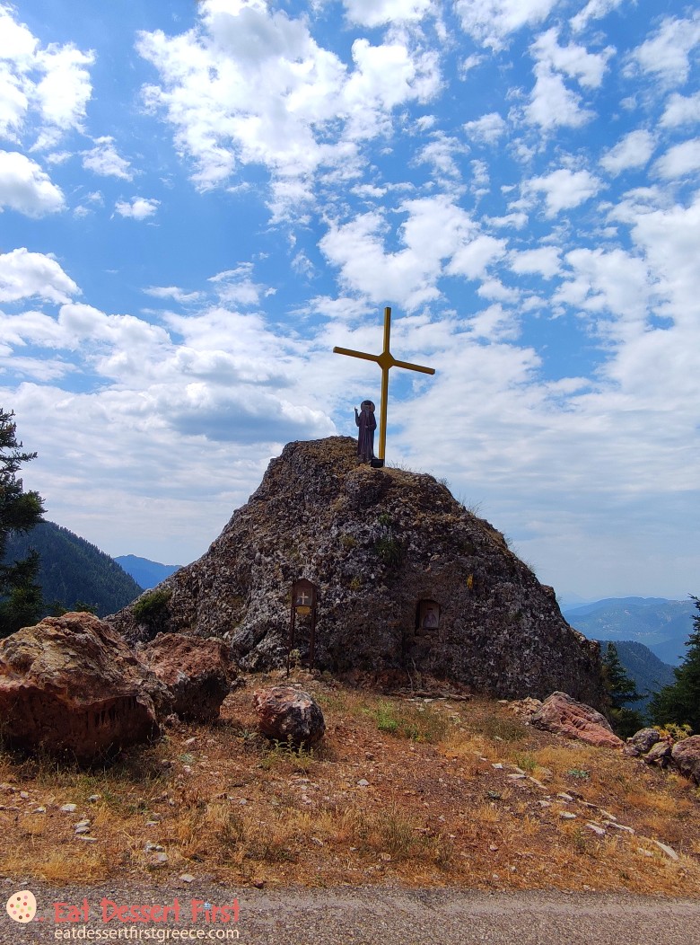 Λίγο μετά το Παυλόπουλο, συνεχίζοντας στο δρόμο προς τη Δάφνη, στην επαρχιακή οδό Καρπενησίου-Νεράιδας, σταματήσαμε σε ένα πλάτωμα με ένα εκκλησάκι αφιερωμένο στον Άγιο Γεώργιο. Η θέα από εκείνο το σημείο στα ευρυτανικά βουνά και τον ποταμό Μέγδοβα ήταν πραγματικά συγκλονιστική!