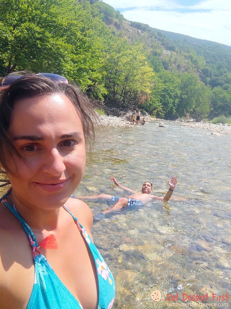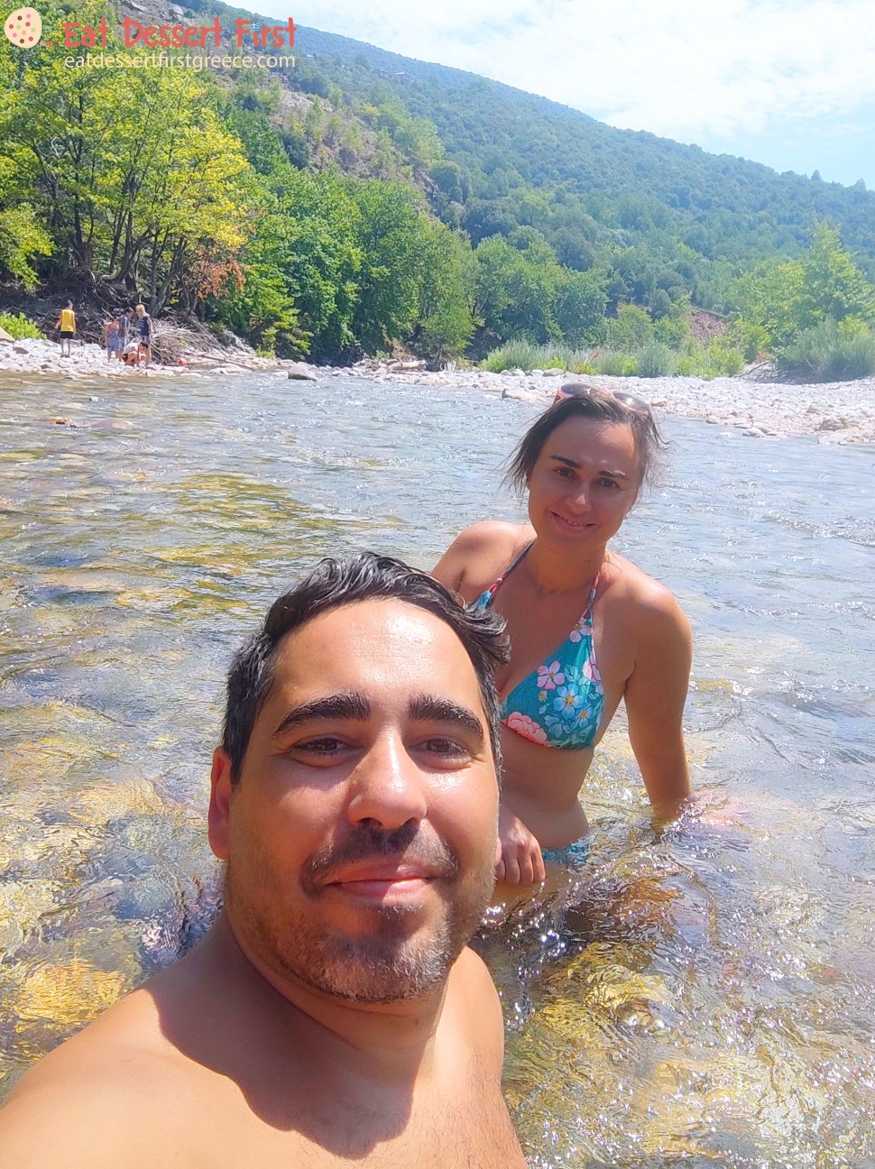Το νερό του Μέγδοβα είναι πεντακάθαρο και δροσερό, οπότε διαλέξαμε από μια άνετη πέτρα και τοποθετηθήκαμε μέσα! Η αίσθηση του νερού που κυλάει είναι ανεπανάλειπτη, αναζωογονητική και χαλαρωτική. Στην αρχή νιώθεις ένα κρύο να σε διαπερνάει, αλλά πολύ σύντομα το σώμα συνηθίζει τη θερμοκρασία και δε θες να βγεις! Το βλέμμα ξεκουράζεται στην ομορφιά του τοπίου και οι ήχοι της φύσης ξεκουράζουν το νου…