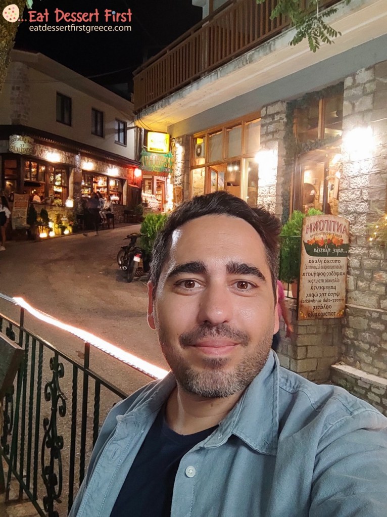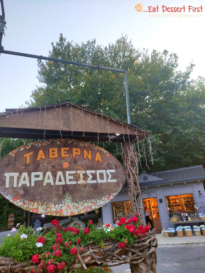 Έτσι γλυκά πέρασε το απόγευμά μας… Φύγαμε από το Μεγάλο Χωριό, αλλά θα επιστρέψαμε ξανά αργότερα για να ακούσουμε τη συναυλία που ετοιμαζόταν στην πλατεία. Ώρα για φαγητό στον Παράδεισο, μια οικογενειακή ταβέρνα ανάμεσα στο Μεγάλο Χωριό και το Μικρό Χωριό, στον δρόμο που οδηγεί προς τον Προυσσό. Εκεί μας περίμενε η ιδιοκτήτρια Βασιλική Καλύβα, η οποία μαζί με την αδερφή της Δήμητρα έχει αναλάβει την επιχείρηση που ξεκίνησαν το 1991 ο μπαμπάς με τον θείο. Μας μίλησε για τον τόπο τους και μεταξύ άλλων μας επισήμανε τον σημαντικό ρόλο που παίζει στην ανάπτυξη της περιοχής η Μονή Προυσσού, την οποία θα επισκεφθούμε την επόμενη μέρα.